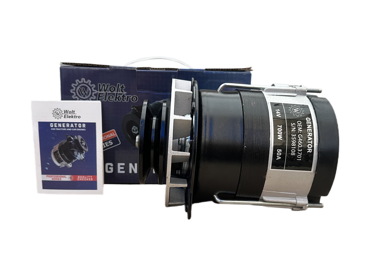 Надійний генератор від Volt Elektro (Чехія), розроблений спеціально для тракторів Т-16, Т-25 з двигуном Д-21. Видає стабільні 14 В і потужність 700 Вт, чого досить для впевненого живлення всієї електроніки.